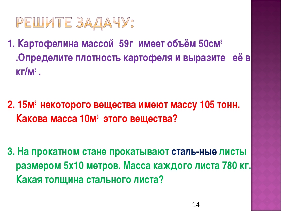 Картофелина массой 70,8 г имеет объем 60 см3. Определите плотность картофеля.