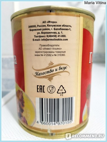 Тушенка Ермолино Говядина тушеная — «Победитель контрольной закупки для авто-экспедиции.»