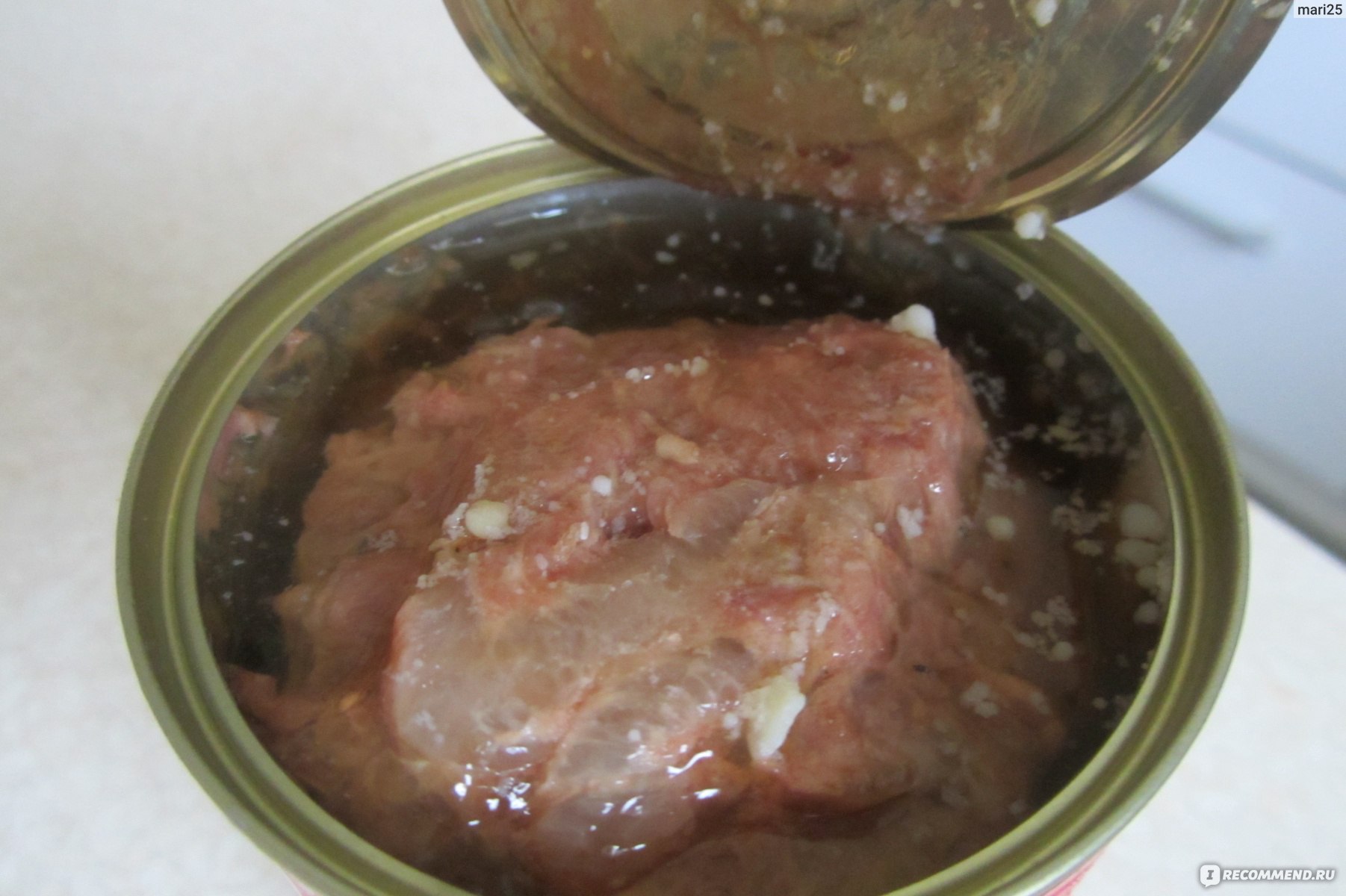 В этой тушенке все именно так, кусковое мясо, жир и лавровый листик.