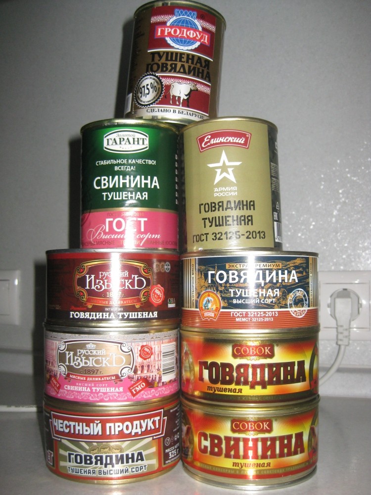 Добрый день! В преддверии небольшой авто-экспедиции по необъятным просторам нашей и чужой Родины была предпринята контрольная закупка тушенки. Купила 4 банки разных производителей. Каждая из них называлась «Говядина тушеная», но не в каждой эта говядина была.