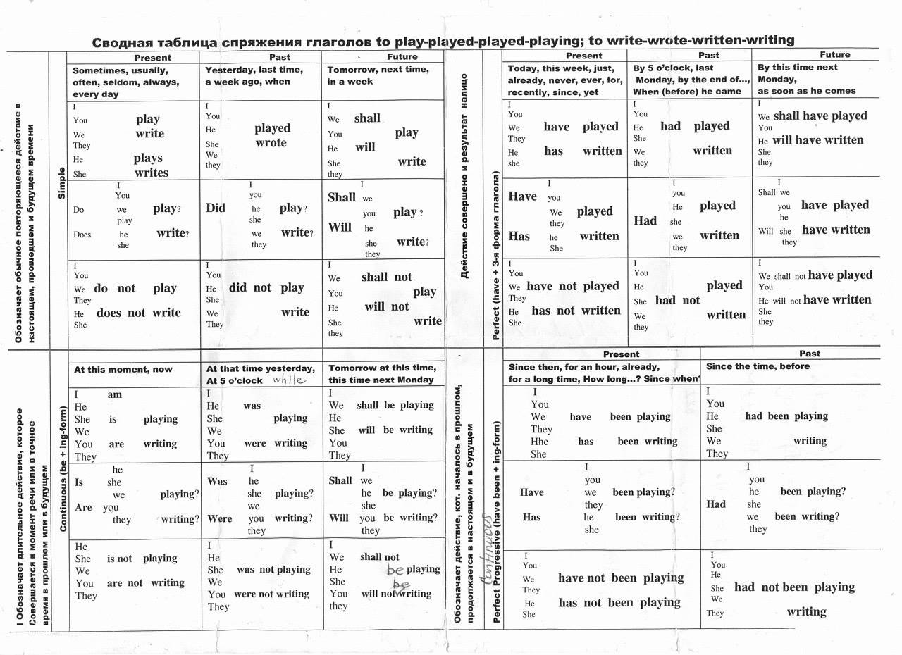 Приведенные ниже таблицы представляют собой краткий справочник, который поможет вам легче понять времена в английском языке:
