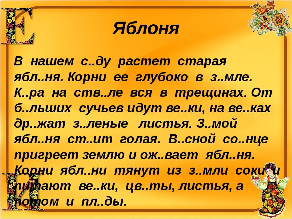 Фосфориты используются как удобрения, а торф — еще и как топливо. Тексты со значком * можно использовать для записи под диктовку. Проказы старухи-зимы. Задумала зима всякое дыхание со света сжить. Прежде всего стала она до птиц добираться: надоели они ей своим криком и писком. Подула зима холодом, сорвала листья с лесов и разметала их по дорогам. Некуда птицам деваться. Стали они стаями собираться.