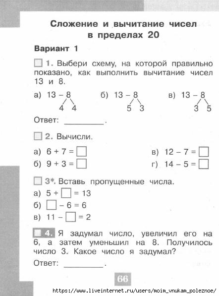 Итоговая контрольная работа по системе Л.В. Занкова по программе И.И. Аргинской, С.Н. Кормишиной