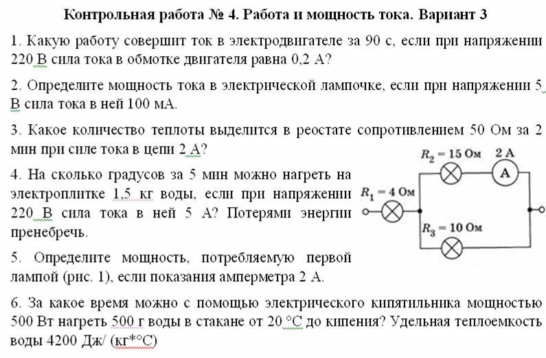 4. Какую работу совершает электрический ток , протекающий через лампу накаливания при постоянном напряжении 12В, если по ней протекло 600 Кл электричества?