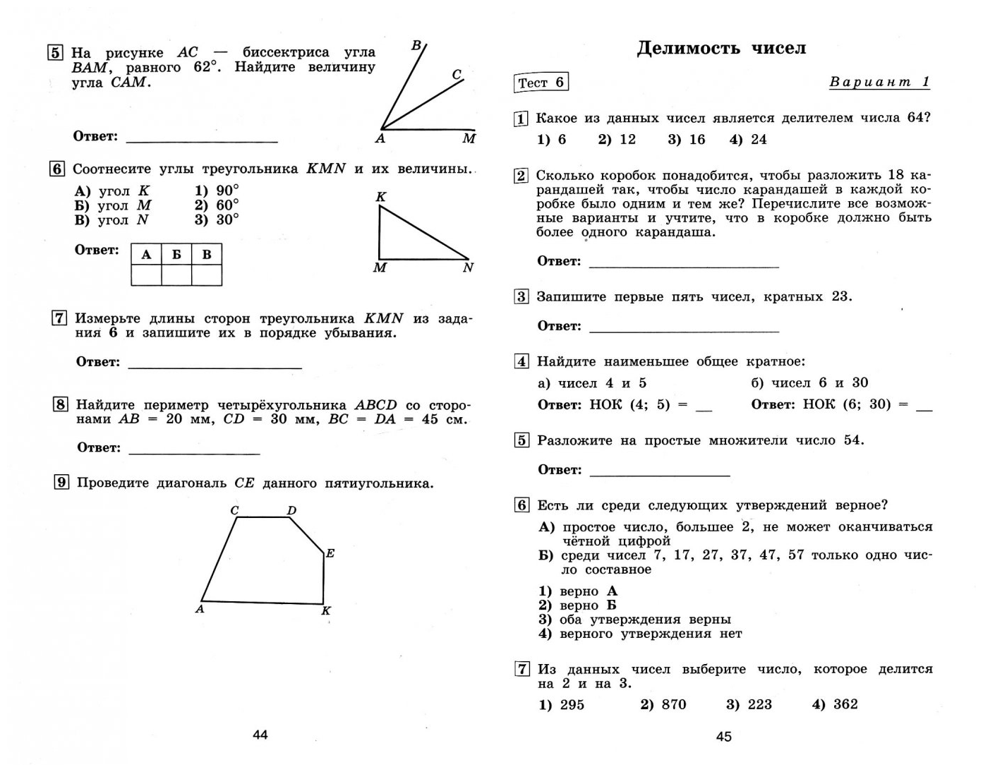 Контрольная работа № 4. Делимость чисел. Треугольники и четырёхугольники