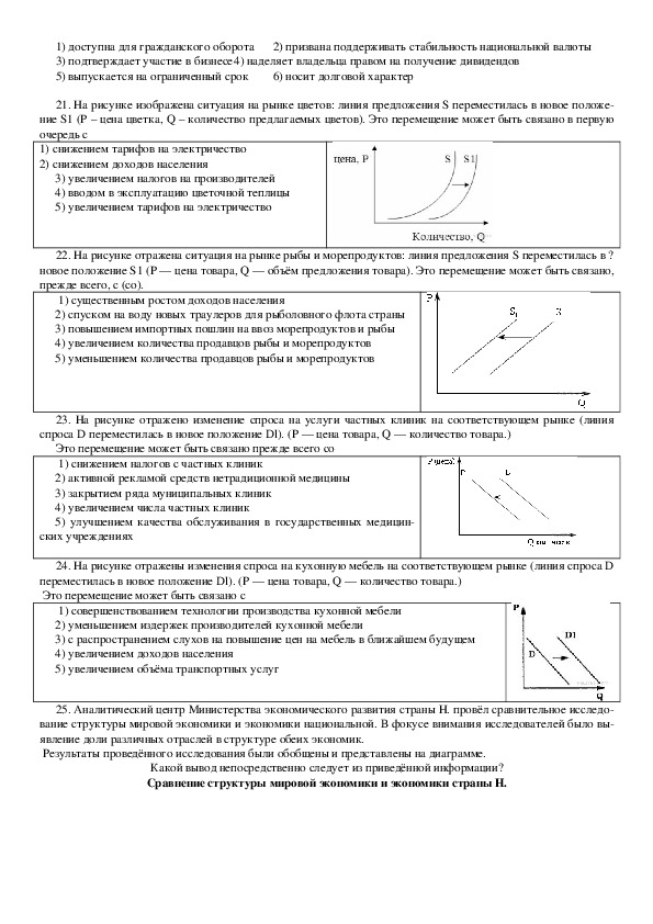 5.На графике изображено изменение ситуации на рынке печатной рекламы: кривая спроса переместилась из положения D в положение D1. (На графике P – цена товара; Q – количество товара.) Какие из перечисленных факторов могут вызвать такое изменение?