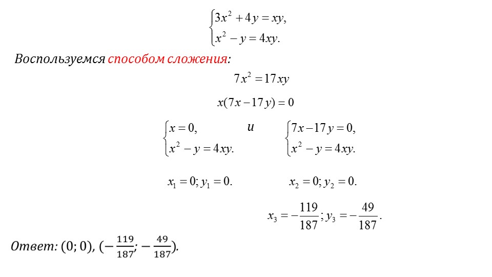 Контрольная работа по теме: «Решение систем уравнений с двумя неизвестными».