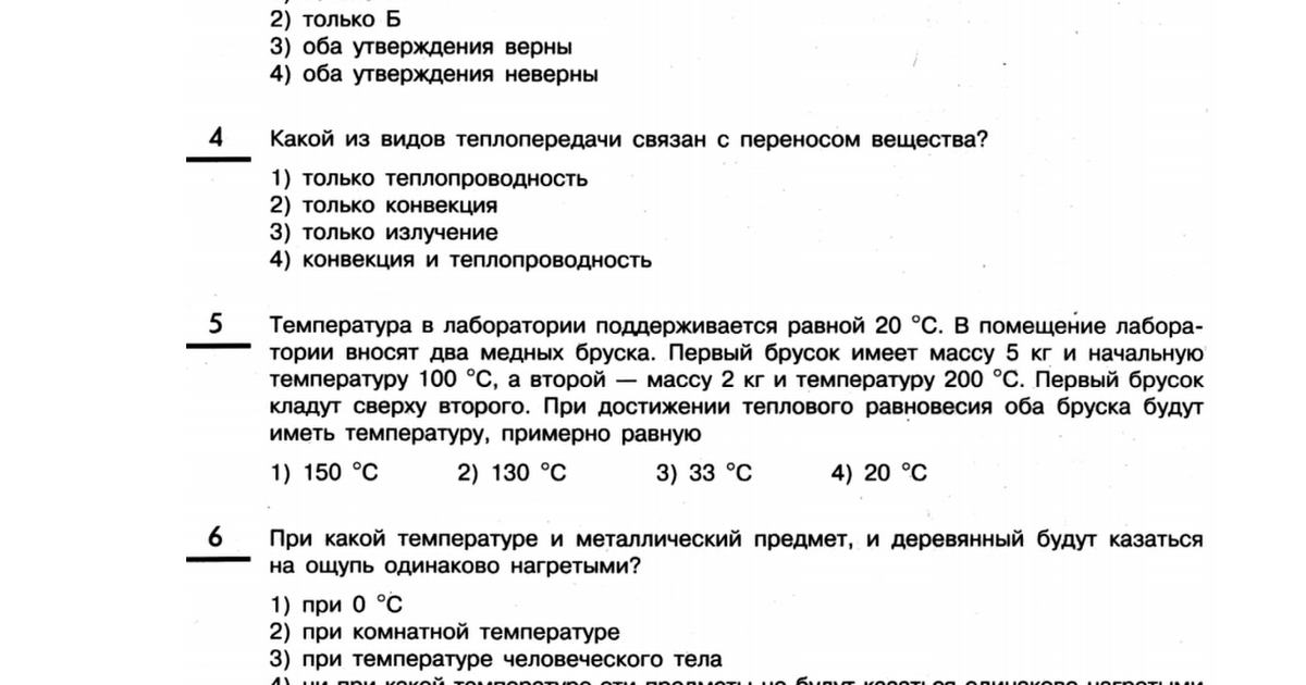 Ответы на контрольную работу Тепловые явления 8 класс