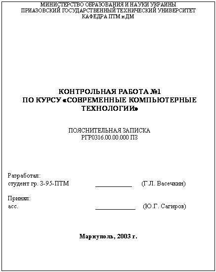 Контрольные работы должны быть грамотно выполнены и аккуратно оформлены. Титульный лист работы оформляется в соответствии с требованиями нормоконтроля (см. Приложение 1). Листы между собой не скрепляются.