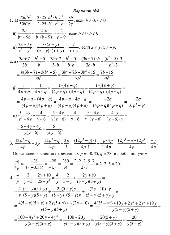 Алгебра 8 Макарычев Контрольная 9 + Решения и Ответы на все 4 варианта .