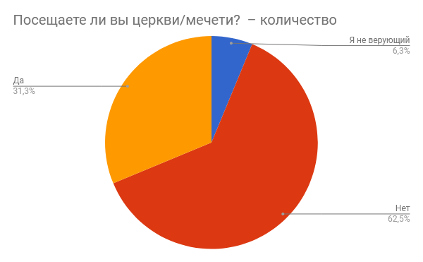 По результатам опроса большинство чтит традиции и соблюдает их, но в этом числе далеко не все. Посещаете ли вы церкви/мечети?
