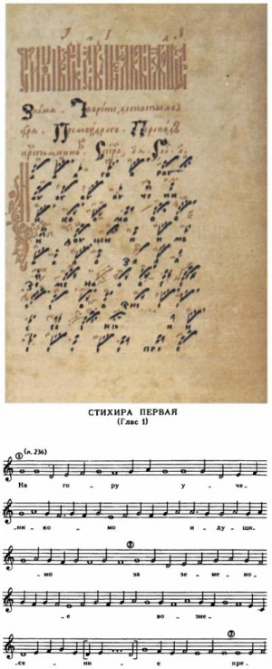 Самые ранние дошедшие до нас списки церковных книг содержат только тексты песнопений. Музыка же заучивалась на слух, передавалась от учителя к ученику.