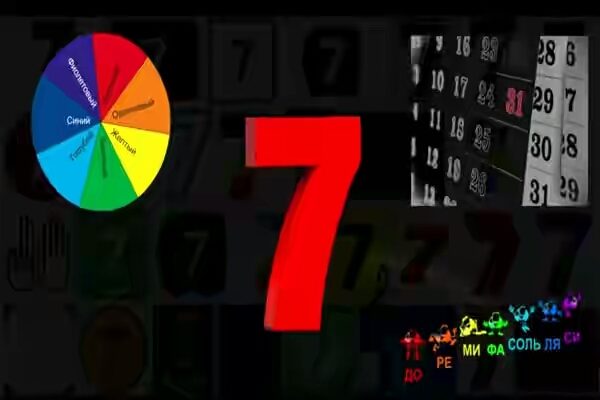 Семь — как и тройка, считается счастливым числом. Поскольку в его состав входят 2, 3, 4 и 5, семерку называют абсолютным числом, числом всех символов. Семь является символом могущества духа и присутствует во многих проявлениях нашей жизни. Прежде всего, сам Бог после шестидневных трудов по созданию Земли назначил седьмой день временем для отдыха. Именно отсюда берет начало традиция делить время на недели, последний день в которых должен быть освобожден от работы и отдан душеполезным занятиям. Число семь прочно обосновалось в фольклоре, например, в поговорках — «Семеро одного не ждут», «Всемером пойдем — далеко уйдем», «Семь раз отмерь — один раз отрежь» и т.п.