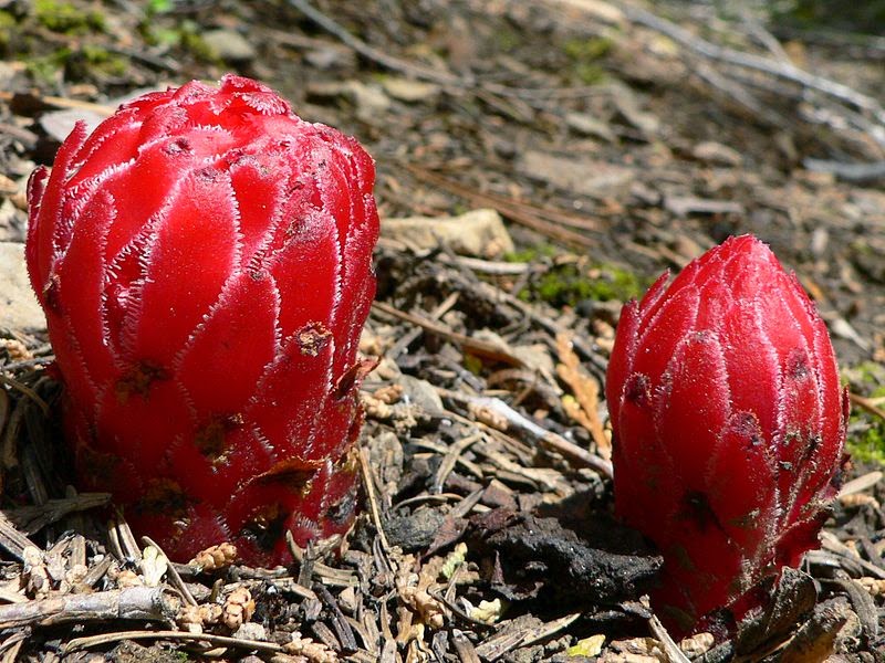 Омела. Фото: Rob «Живой транспорт», который использует омела для расселения, имеет свои недостатки. Пищеварение у птиц очень быстрое — ягоды полностью перевариваются менее чем за полчаса. Австралийский биолог В. Сервенти этим объяснил то, что на острове Тасмания омелы нет, хотя в Австралии она весьма распространена. От Австралии до Тасмании — более часа птичьего полёта, и семена не успевают долететь до места назначения, падая в море.В заключение рассказа об омелах упомянем о самом, пожалуй, необычном представителе этого рода. Ожереловая омела, обитающая в Индии, поселяется на... омеле восточной, а та — на дереве-хозяине. Настоящая «пирамида» из паразитов! Петров крест В отличие от омелы — зелёного растения — петров крест (Lathrea squamaria) из семейства коричниковых начисто лишён хлорофилла: от листьев у него остались лишь небольшие чешуи. Это растение-паразит можно встретить в средней полосе России на корнях лещины (орешника - прим. biofile.ru), ольхи, липы. Правда, десять месяцев в году растение скрыто под землёй, где его корневища получают питательные вещества. За это петров крест прозвали ещё потаённицей. Здесь его никто не рвёт, не топчет, не поедают травоядные животные. Заразиха Заразиху можно увидеть на посевах подсолнечника, конопли, табака, клевера, среди огородных культур. Ее легко отличить по бледно-бурой окраске стебля и чешуйчатых листьев. Эти листья никогда не бывают зелеными: в них нет хлорофилла. На верхней части стебля сидят многочисленные довольно крупные цветки, чаще всего голубовато-лиловые. Значительная часть заразихи находится в почве. Своим расширенным основанием ее стебель прирастает к корням растения-хозяина. Заразихи размножаются семенами, которые прорастают на поверхности почвы. У нитевидного проростка нет обычных семядолей, на нем нельзя различить ни стебля, ни корня: весь он состоит из одинаковых нежных клеточек, На одном конце ниточки проростка остается семенная кожура в виде шапочки. Этот конец можно считать вершиной стебля. Его противоположный конец врастает в почву так, что кончик проростка описывает винтовую линию. Проросток заразихи перестает расти, как только его кончик наткнется на корень растения-хозяина. Проросток плотно прикладывается к этому корню и начинает утолщаться. На поверхности утолщения появляются выросты, похожие на бородавки. Остальная часть проростка, несущая «шапочку», отмирает. Бородавчатое тельце выпускает сосочек, который врастает в ткани корня растения-хозяина, и начинает высасывать из него питательные вещества. На поверхности бородавчатого тельца появляется почка, из которой вырастает стебель паразита, и на нем потом распускаются цветки. Часть корня растения-хозяина ниже места поселения паразита отмирает, и оба растения имеют такой вид, будто тело паразита непосредственно продолжается из корня хозяина. Заразиха отнимает пищу у растения-хозяина и вызывает его гибель. Бороться с ней очень трудно. Самый верный способ — выводить устойчивые против заразихи сорта культурных растений. Очень интересна гигантская пустынная заразиха. Она паразитирует на кустарниках, главным образом на джузгуне, в песчаной пустыне Каракумы. Толстый, мясистый ствол пустынной заразихи вырастает за лето на метр, а иногда даже выше человеческого роста. На корне джузгуна заразиха образует гнездо почек
