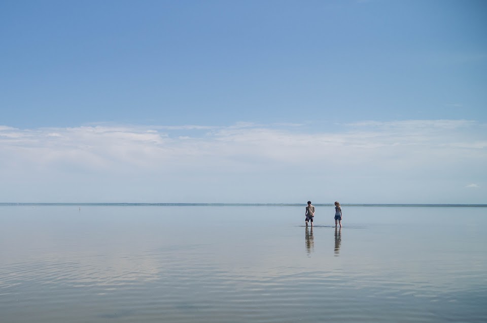 История повторилась - мы с мужем решили наслаждаться пейзажами, а Олег со Светланой отправились к воде. Лично я разочаровалась в прикладной пользе такого количества соленой воды, когда узнала, что глубина совсем маленькая. Эх, не море, жаль, но не море. Так что нам вполне хватало фотографической ценности места и атмосферности. Ну а нашим друзьям хотелось добраться до воды и исследовать ее. На сей раз их затея увенчалась успехом: они дошли.