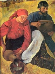 Есть у Некрасова еще один интересный крестьянский образ. Это Груша из стихотворения “В дороге”. Она выросла в барском доме и не обучалась тяжелому деревенскому труду. Но судьба распорядилась так, что она вышла замуж за простого мужика. Груша начинает чахнуть, и конец ее совсем близок. Ее душа томится, но муж, конечно, не в состоянии понять ее. Ведь вместо того чтобы работать, она “на какой-то натрет все глядит да читает какую-то книжку...” Не под силу ей крестьянский труд. Она бы и рада работать, помогать, да не приучена. Для того чтобы вынести всю эту каторжную работу, нужно привыкнуть к ней с детства. А ведь многие поколения крестьян росли именно в такой обстановке. С детства работали не покладая рук. Но не шло все это впрок: работали на господ, а сами кормились впроголодь, только бы с ног не свалиться.
