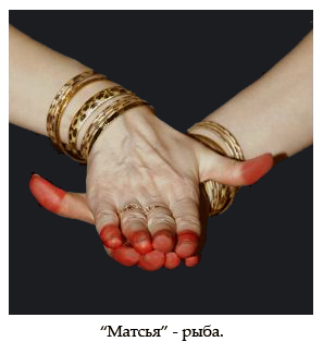 Танец в Индии возник из ведических ритуальных танцев. В ритуале также были заложены элементы драматического представления. Никакая другая танцевальная форма не уделяет столько внимания языку жестов, как индийская. Каждый жест продумывается до мельчайших подробностей. С древнейших времен «язык рук» (акшара- муштика) был предметом серьезного изучения. Некоторые жесты стали универсальными. Например, жест, обозначающий «покровительство и защиту» (абхайя-мудра). Подобным образом, сложенные вместе ладони (анджали), жест, которым индийцы приветствуют друг друга, напоминает им о божественной сущности человека. (Кстати, сложенными вместе ладонями, поднятыми над головой, приветствуют богов, сложенными перед лицом приветствуют своего гуру (учителя), а сложенными у груди – брахмана или уважаемого человека.)