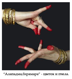 Для того чтобы кисти рук были пластичны, а пальцы гибки, существуют различные упражнения. Правильно и красиво показанный жест не только дополняет и подчеркивает выразительность абхинаи (пантомимы) танцовщицы, но и всей композиции в целом.